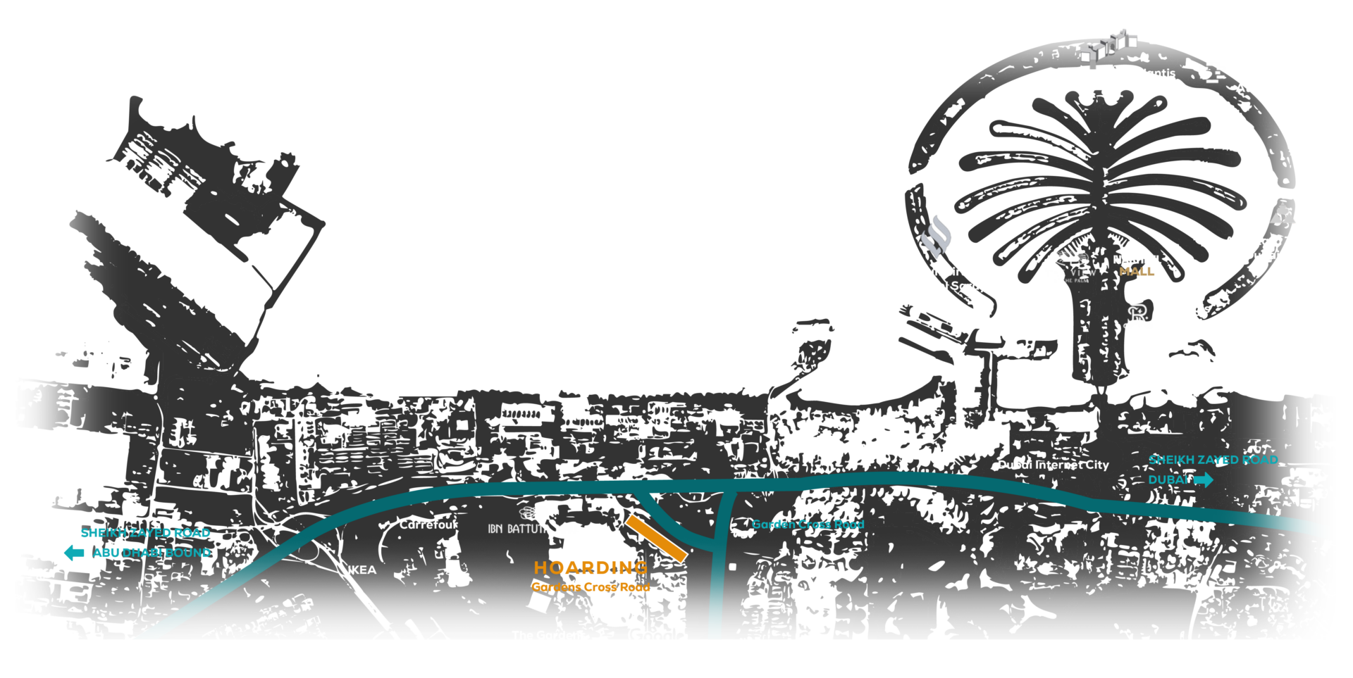 Prepare to captivate and command attention with our unmissable hoardings strategically positioned in prime locations such as Sheikh Zayed Road, Gardens Cross Road, and Al Khail Road. These towering displays epitomize the power of large formats to etch a lasting impression in the minds of viewers. Each hoarding serves as an expansive canvas for brands to broadcast their messages with unparalleled potency, extending their reach and forging profound connections with audiences as they navigate their daily journeys.